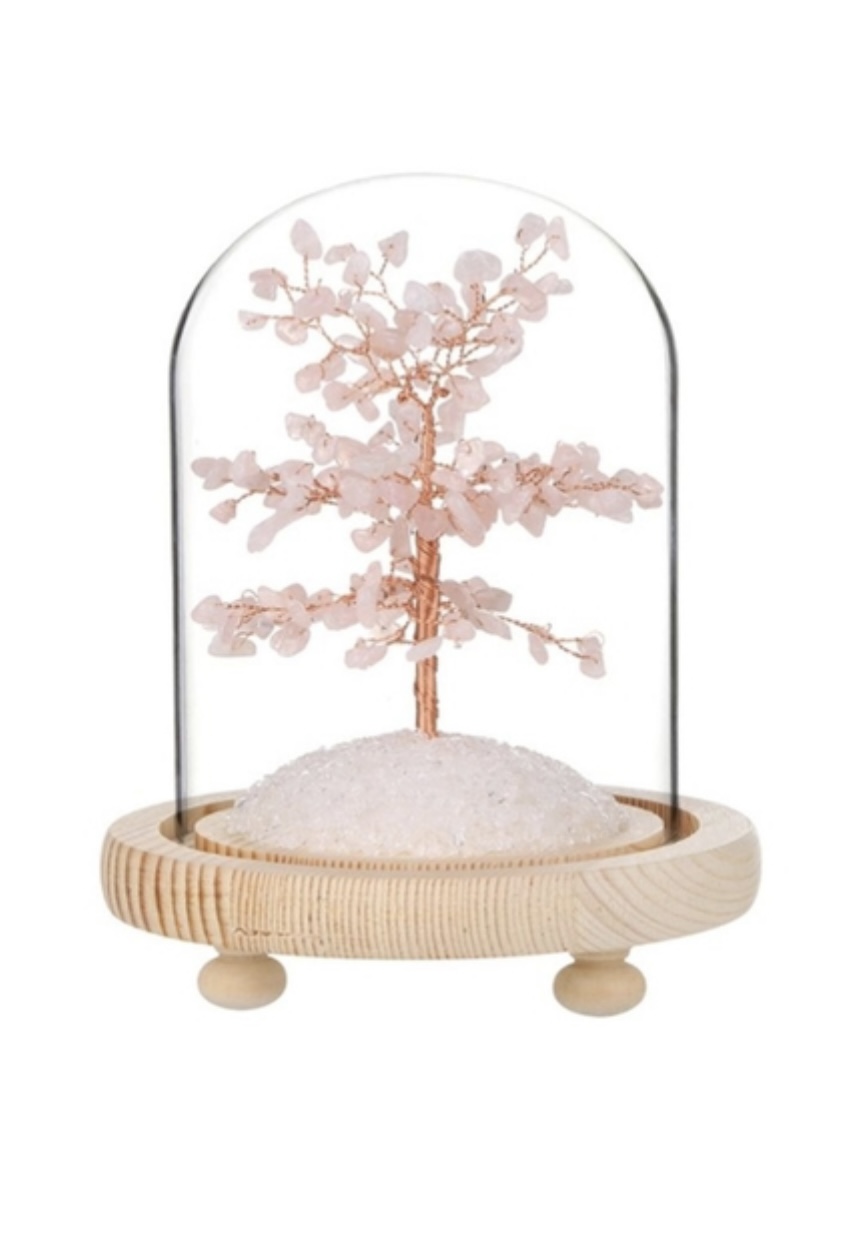 Finement orné de pierres naturelles de quartz rose, cet arbre du bonheur saura s’intégrer harmonieusement dans un intérieur grâce à son design équilibré et sa mise en beauté sous une cloche en verre. L’arbre du bonheur est le symbole de la vie, du lien entre la terre et l’infini céleste. Le quartz rose permet d’apaiser les peines et de développer sa confiance et son ouverture à l’autre. Sélectionné pour ses vertus apaisantes, il symbolise l’amour de soi et des autres.