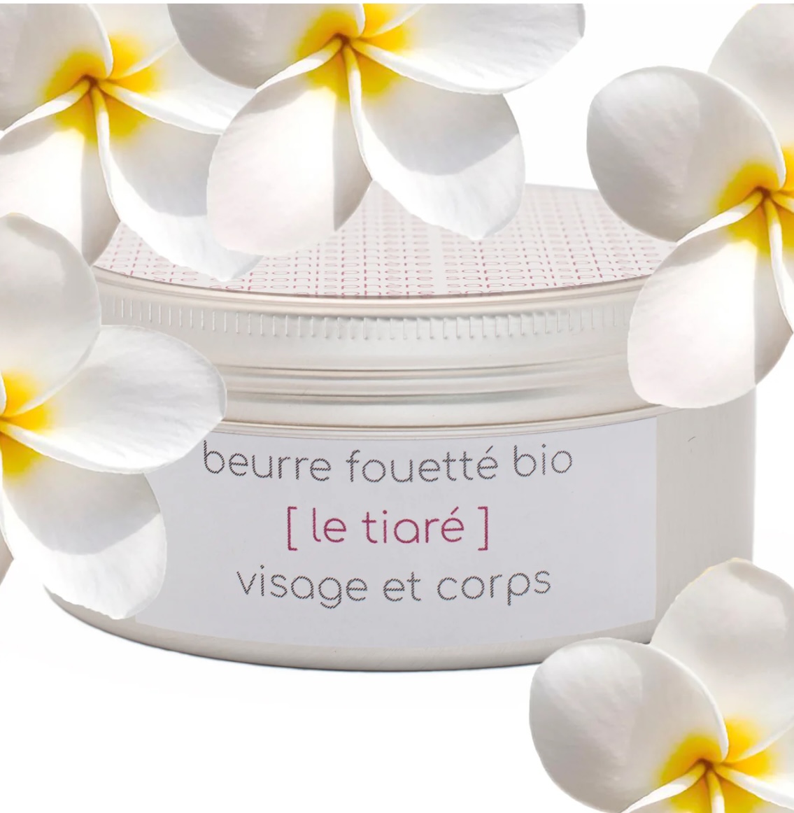 beurre fouetté à la mousse ultra onctueuse et fondante, le tiaré vous comblera tant au niveau de sa texture que de sa composition ou de son parfum de tiaré naturel.
