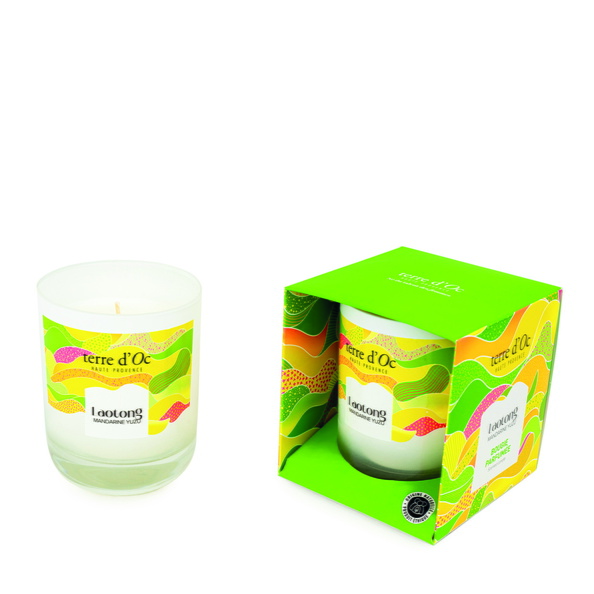 Cire 100% végétale (colza et karité), 5% de beurre de karité issu du commerce équitable, mèche coton. – Contient : LINALYL ACETATE, CITRAL, BOISVELONE, (R)-P-MENTHA-1,8-DIENE. – Mandarine yuzu