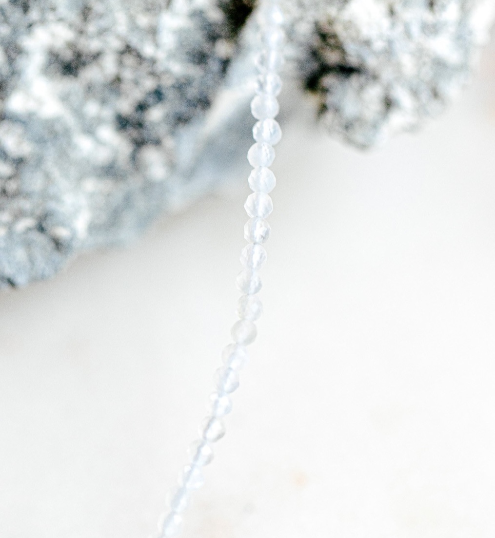 Nos colliers sont réalisés avec amour à la main en Belgique. Ils sont montés sur un fil et fini par un petit fermoir mousqueton en Argent 925. Le collier mesure 44cm de long. Les perles mesurent 2.5mm.