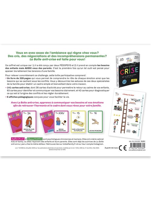 · Le livret de 328 pages , qui vous permet de comprendre le rôle de chaque émotion, ainsi que les besoins qui se cachent sous les conflits. Vous y découvrirez les astuces de ces deux spécialistes de la famille pour remettre un cadre simple et bienveillant dans votre maison ;